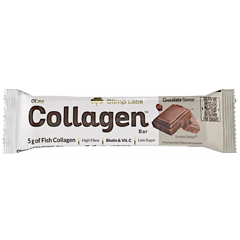 Olimp COLLAGEN Bar - Baton białkowy (19% białka) z dodatkiem kolagenu rybiego i witamin C, D, A, biotyny oraz manganu.